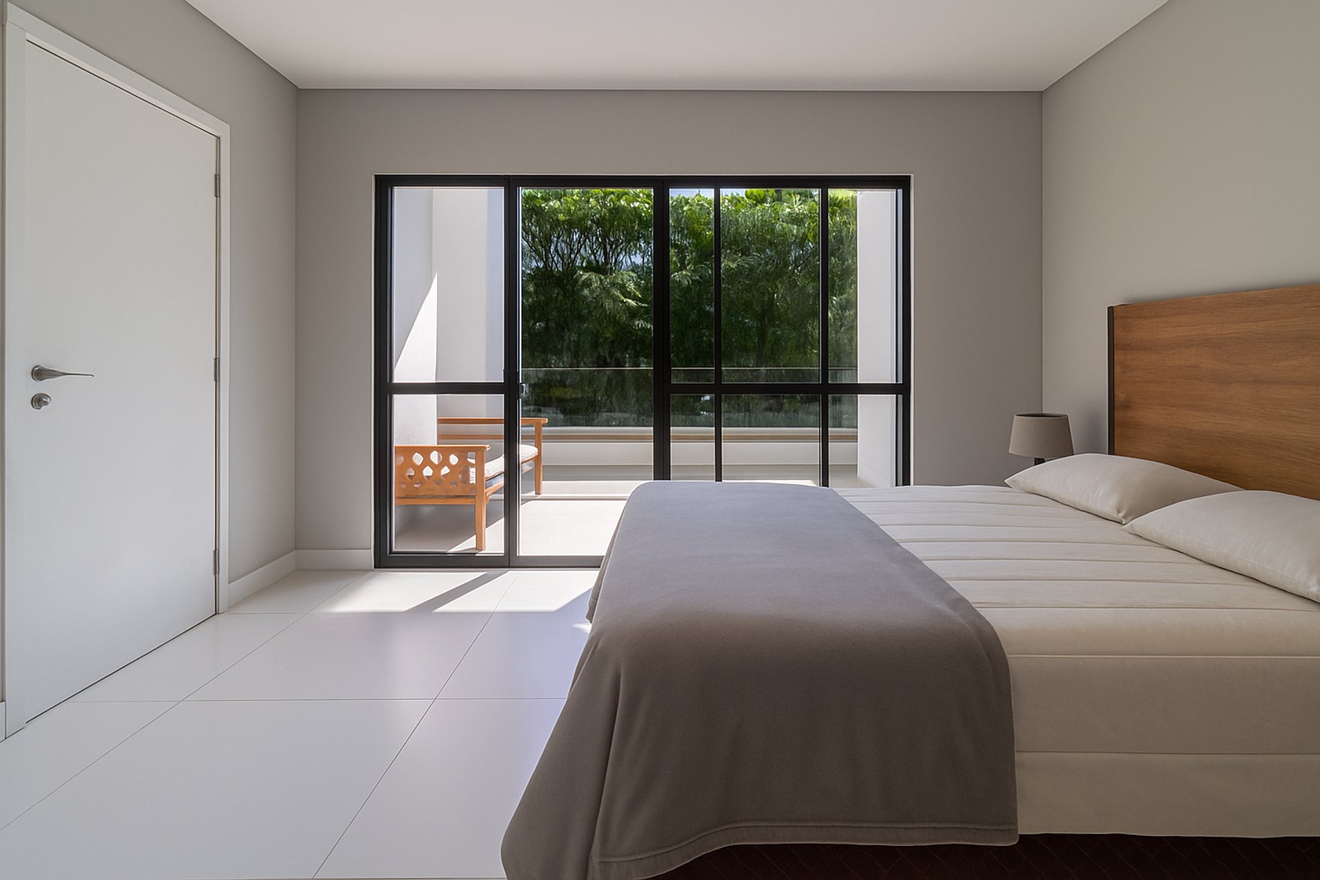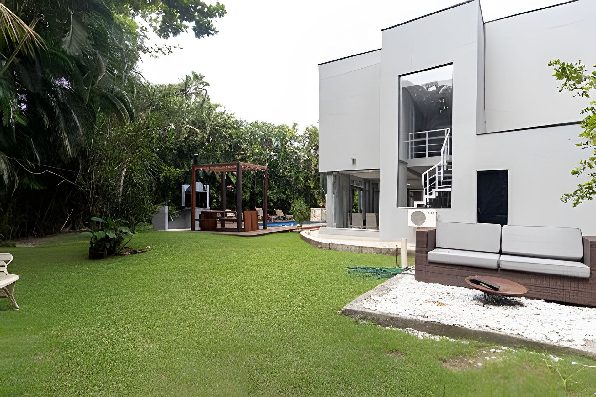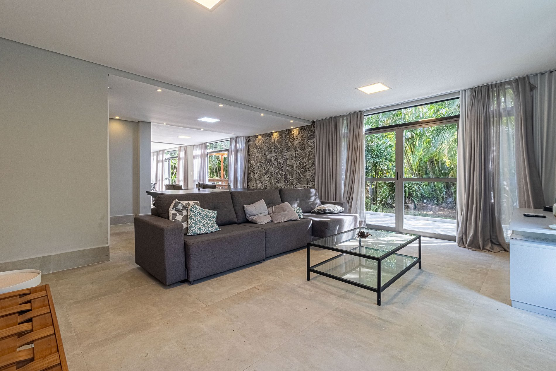 Ao chegar, você será recebido por um encantador jardim, que adiciona frescor e beleza à entrada da casa. Toda a residência segue um estilo clean, com espaços amplos, ventilados e iluminados, proporcionando um clima acolhedor e elegante. São 6 suítes ao todo, distribuídas de forma a garantir total conforto e privacidade aos hóspedes.